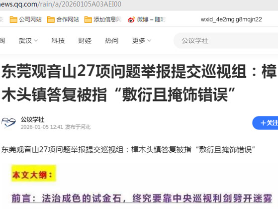 东莞观音山27项问题举报提交巡视组:樟木头镇答复被指“敷衍且掩饰错误”