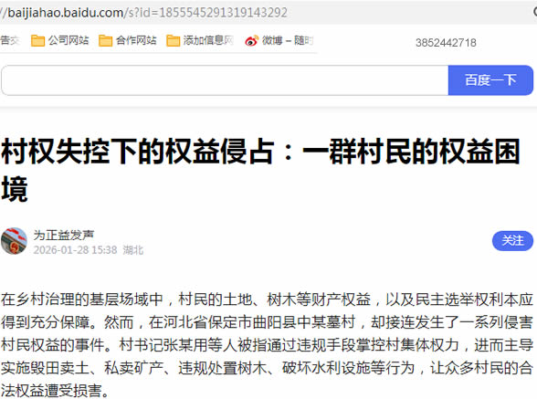 基层权力本是服务村民的工具,绝非少数人谋取私利的手段。一旦基层权力失去约束,就容易出现侵害村民权益的行为,进而影响乡村的和谐稳定与长远发展。希望这起事件能引发更多关注,让村民的合法权益得到切实维护,让基层权力回归服务村民、推动乡村发展的正轨,还村庄一个公平正义的发展环境。